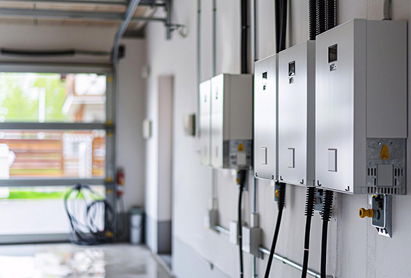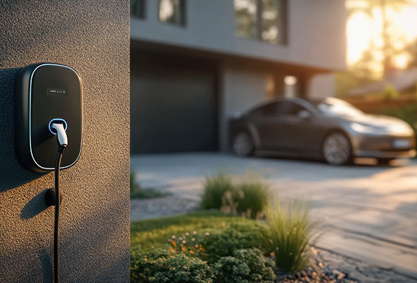 Level 2 EV charging station installation with dedicated 240V circuit and smart monitoring capabilities.
